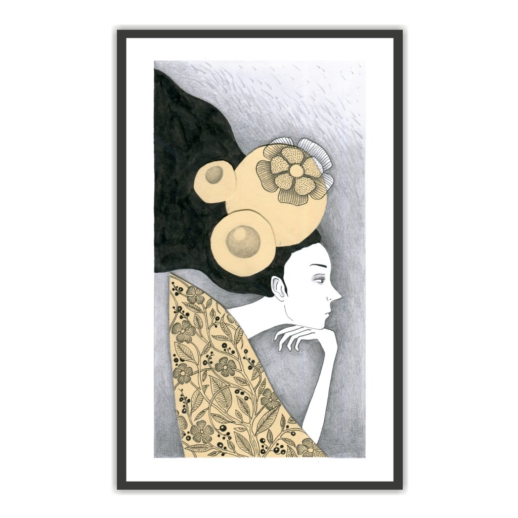reprodukce analogové ilustrace (perokresba, kresba tužkou, koláž); papír 300g; rozměr ilustrace 131 x 260 mm; rozměr papíru A4 210 x 297 mm; rám není součástí (tipy k rámování najdete v mém blogovém článku)